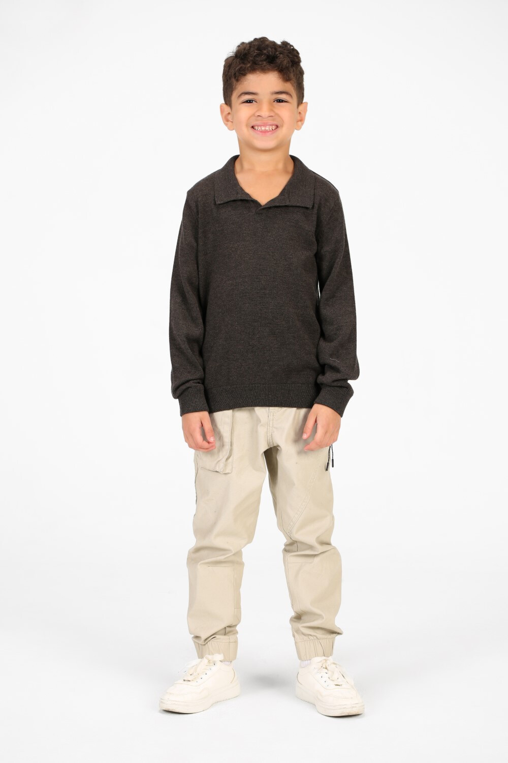 Boy's Cotton Long sleeves Polo Pullover Sweater