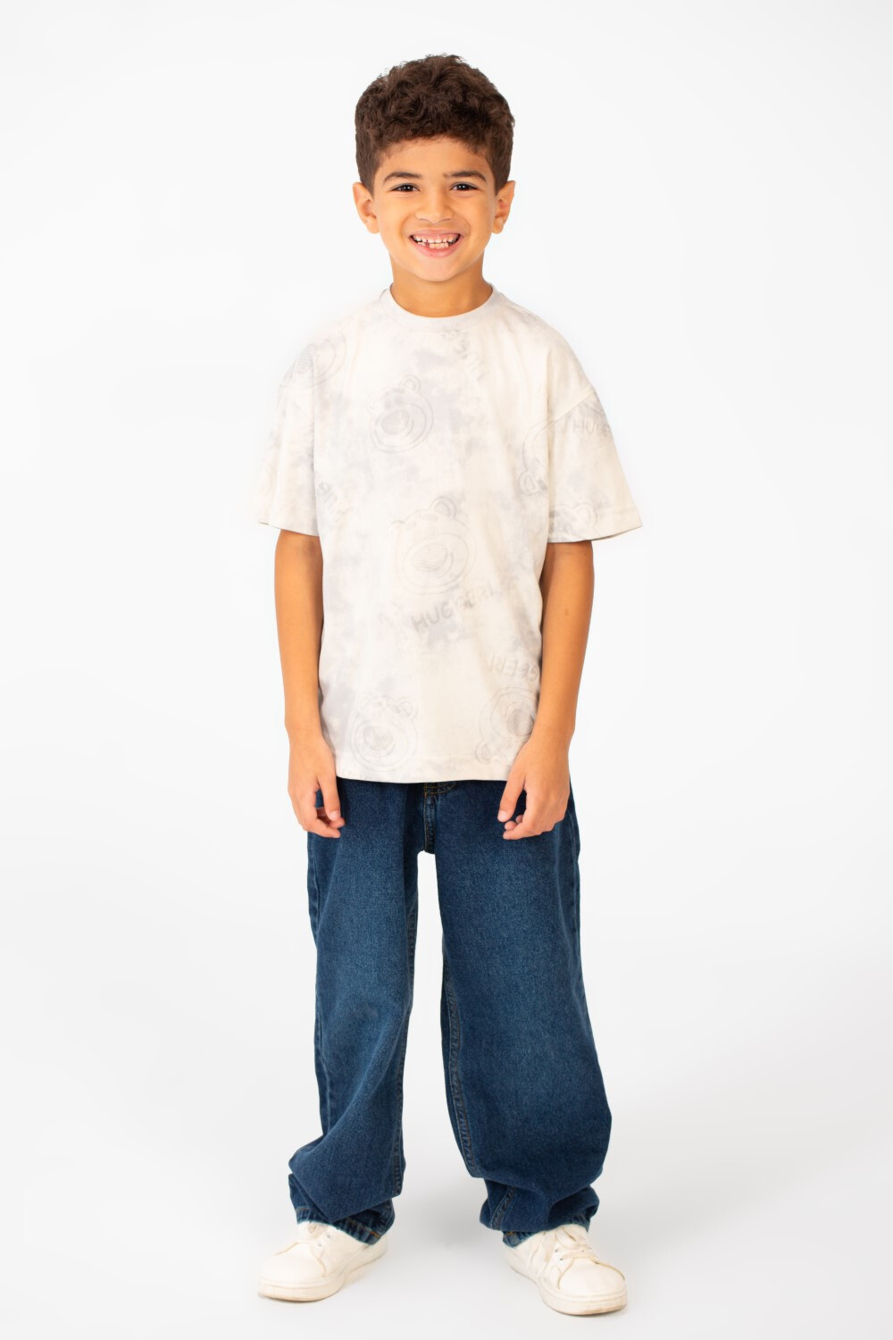 Boy's Tie Dye Short Sleeve Oversized T-Shirt with Hugger Print