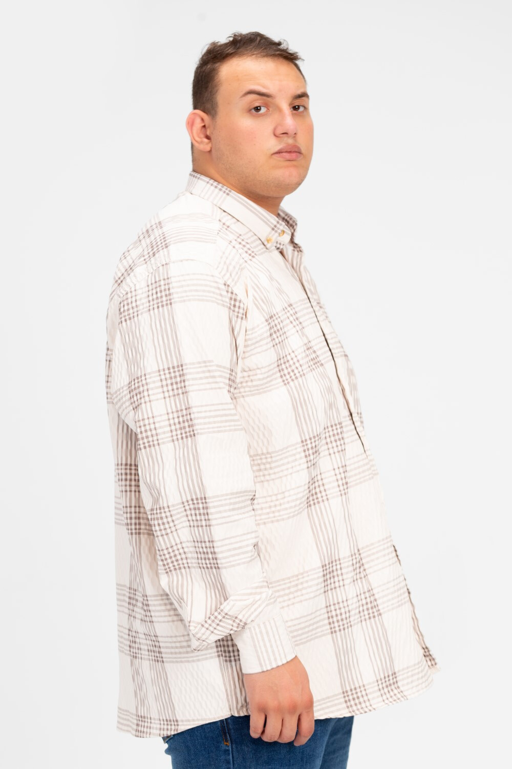 Men's Big size check Shirt With Collar And Long Sleeves
