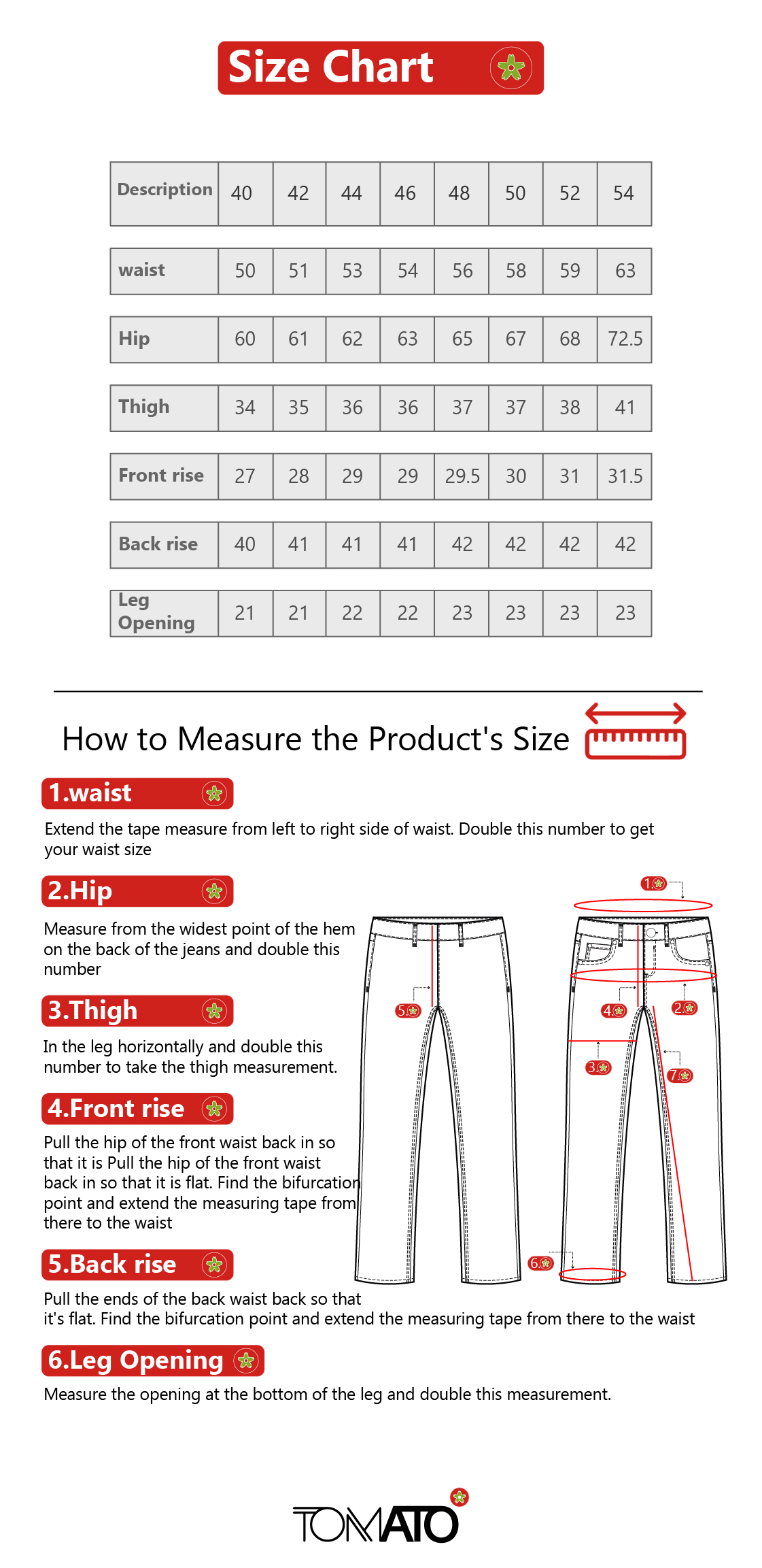 size chart big size pants