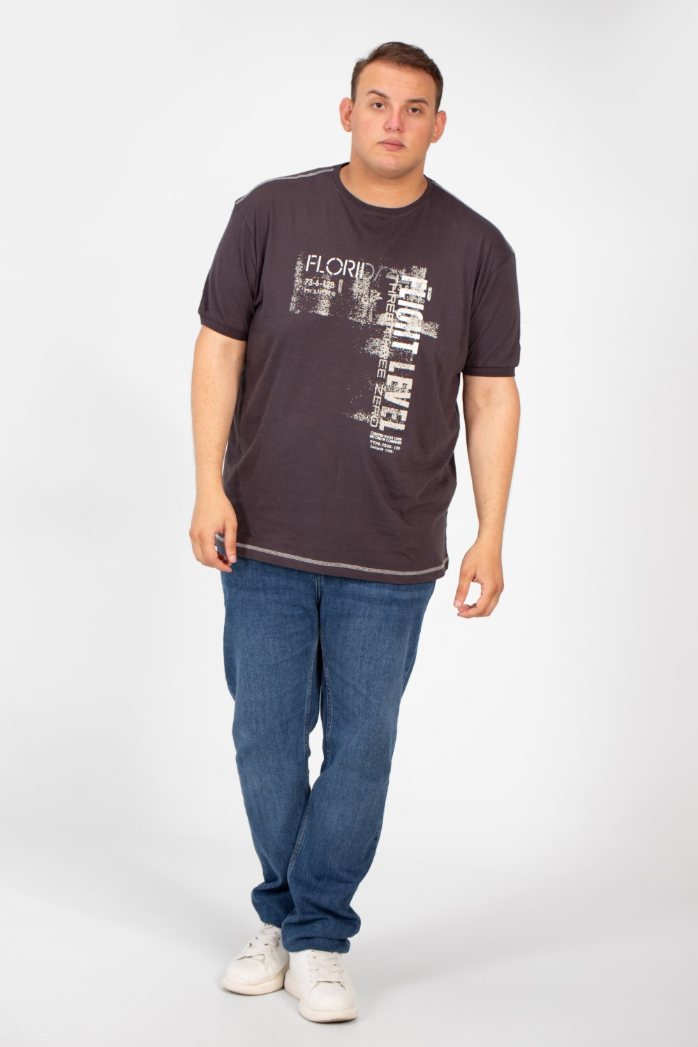 Men's Big Size T-shirt With Front Print Half Sleeves And A Round Neck