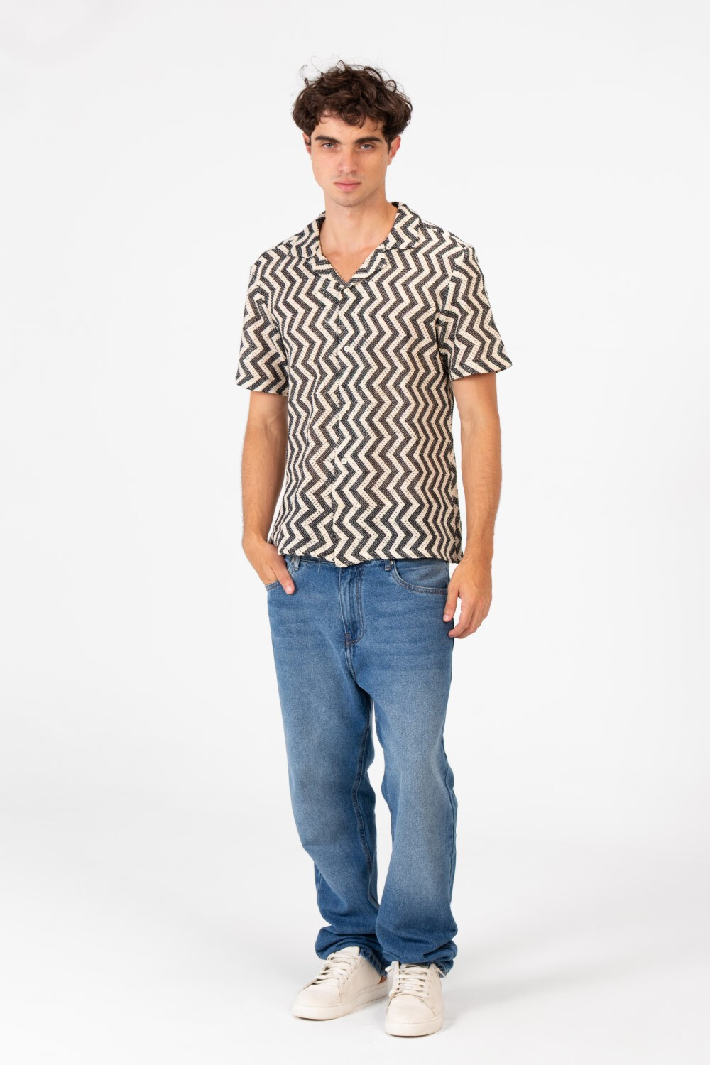 Men's Slim Fit Short Sleeve Jakar Mesh Shirt With Breathable High Quality Material