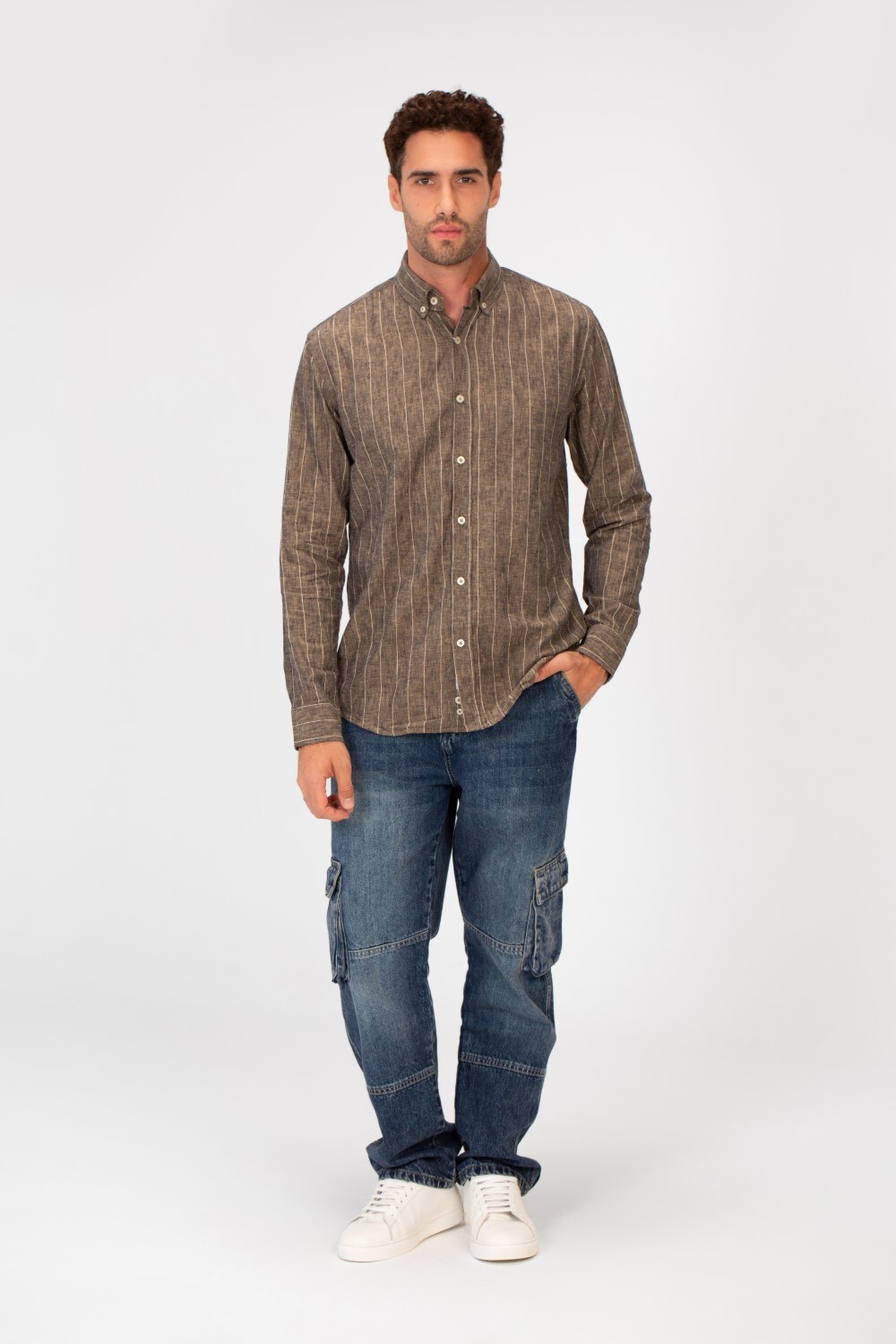 Introducing the Men's Slim Fit Striped Long Sleeves Linen Shirt In Basic Modern Colors by American --- Unleash Your Style with Men's Slim Fit Striped Long Sleeves Linen Shirt In Basic Modern Colors Upgrade your wardrobe with our Men's Slim Fit Striped Long Sleeves Linen Shirt In Basic Modern Colors. Crafted with high-quality linen fabric, this shirt is not only stylish but also incredibly comfortable. The slim fit design gives you a sleek and modern look, perfect for any occasion. --- Featu
