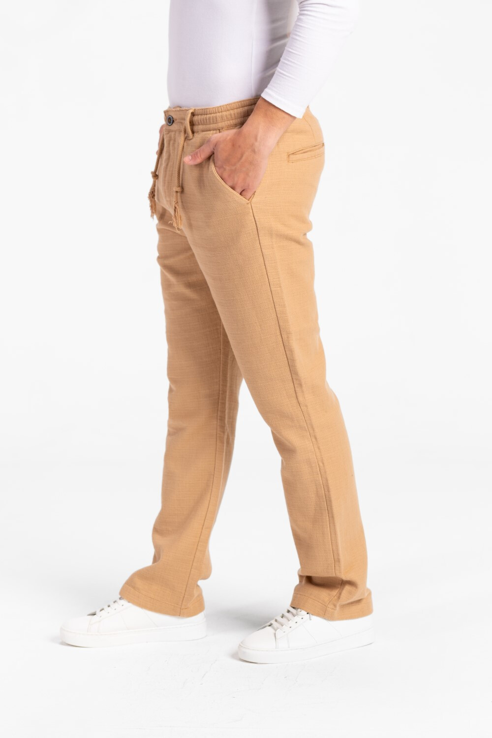 Introducing: Men's Stylish Drawstring Waist Linen Pants With Pockets Headline: Stay Cool and Stylish All Day with Men's Stylish Drawstring Waist Linen Pants With Pockets Description: Upgrade your wardrobe with our Men's Stylish Drawstring Waist Linen Pants With Pockets - the perfect blend of comfort, style, and affordability. Made from premium quality linen fabric, these pants are designed to keep you looking sharp while feeling cool and comfortable all day long. Benefits: - Stay cool and com